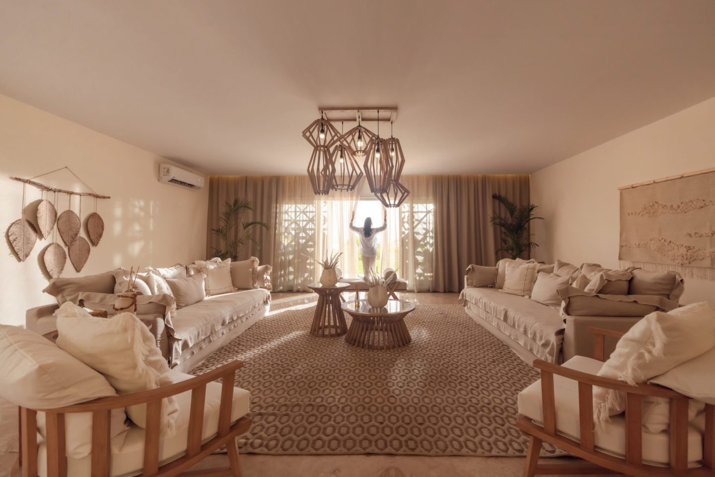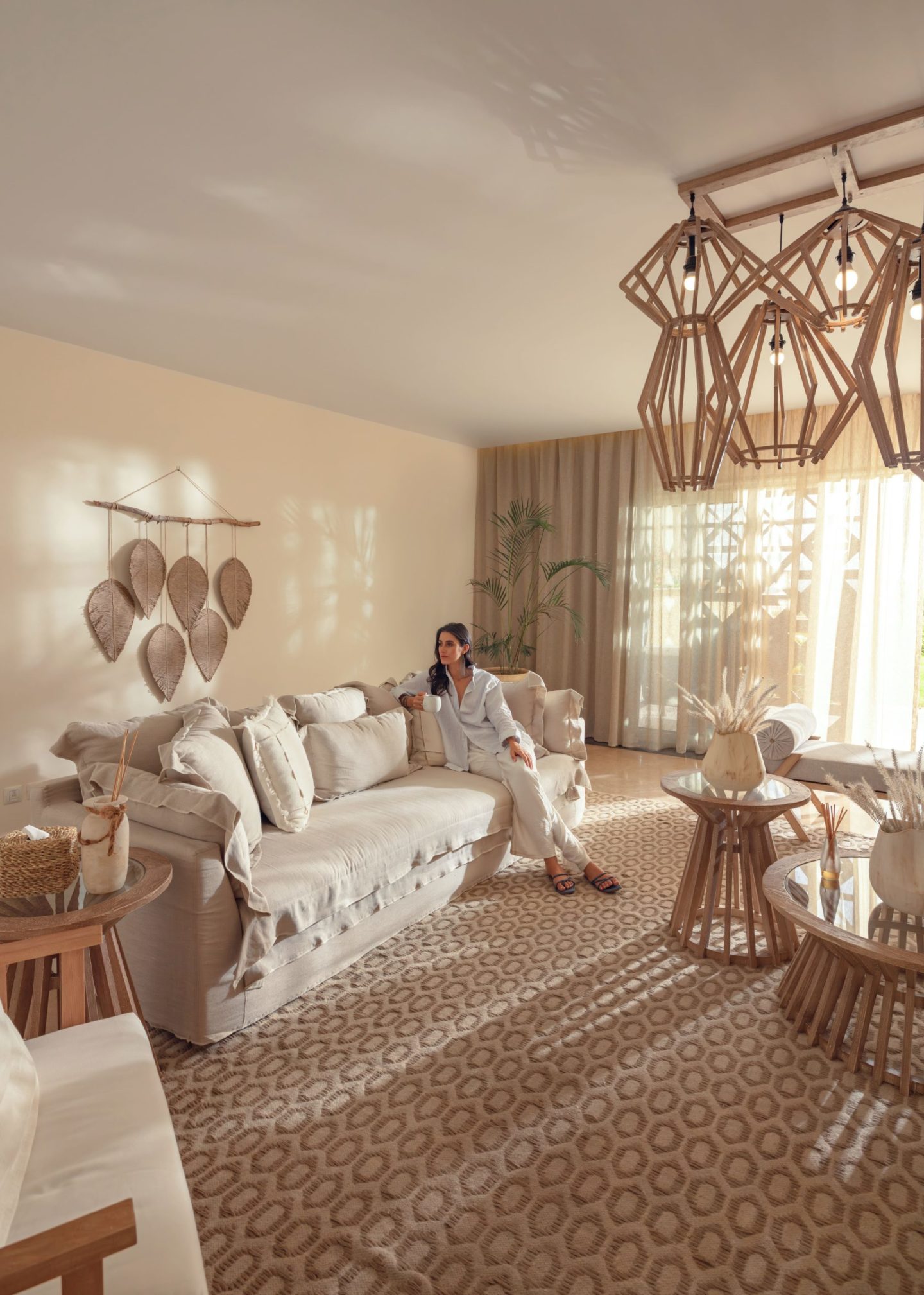 Sela Villa is equipped with natural linen fabrics and comfortable couches designed to take away the stress of daily life. All furniture is 100% Egyptian made with natural & sustainable materials, supporting the local community and impacting the wellbeing of local businesses. Shared amenities across rooms: writing desk, free high speed wireless internet access, personal electronic safe and a fully stocked mini bar.